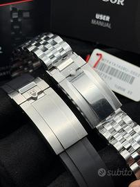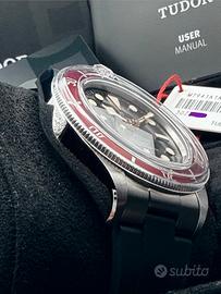 Tudor Black Bay 41mm Ghiera Rossa Burgundy Rubber + Bracciale Jubilee Aftermarket di alta qualità con Logo. NUOVO MAI INDOSSATO - 08/2025 Referenza M-7941A1A0RU con confurino in caucciù e deployant acciaio; aggiungo bracciale Jubilee aftermarket con Logo Tudor e chiusura T-Fit. Orologio FULLSET, con Card NFC (vedi screenshot immagine 6) che offre 5 anni di Garanzia internazionale. Provenienza ufficiale TUDOR, no passamani da finti reseller. Prezzo NON TRATTABILE! Non sono interessato a permute di alcun genere. Orologio di mia proprietà già disponibile. Ricevo solo presso il mio ufficio a Bergamo previo appuntamento, No parcheggi, No centri commerciali. Fornisco il documento di “Lecita Provenienza” al momento dell’acquisto con pagamenti tracciati, o eventuali contanti nei limiti di legge a discrezione dell’acquirente. Offro massima serietà e chiedo altrettanto (potete leggere le mie recensioni). Possibile eventuale spedizione, anche con portavalori, da accordare con l’acquirente previo contatto. Molto gradito un primo contatto telefonico. Scrivetemi che vi fornirò il mio numero personale. Garantisco che l’orologio da me proposto è ORIGINALE IN TUTTE LE SUE PARTI.