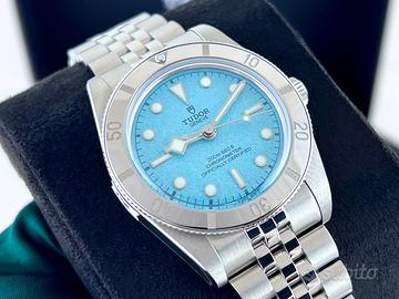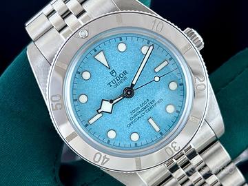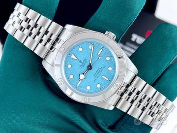 Tudor Black Bay 54, edizione speciale Laguna Blu / Lagoon Blue, spettacolare quadrante Turchese testurizzato, ghiera acciaio lucidata effetto specchio, cassa da 37mm, referenza M79000, giugno 2025, calibro manifattura Tudor MT5400 con certificazione COSC.