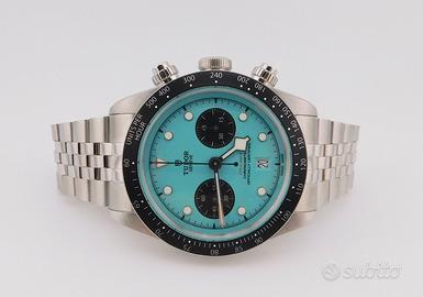 Negozio vende Tudor Black Bay Chrono Flamingo Blue Ref. 79360N, automatico, acciaio, del 12/2025, 41 mm in perfetto stato con scatola e garanzia Tudor più la garanzia dell negozio di buon funzionamento per 12 mesi. Possibilità di finanziamento con Compass