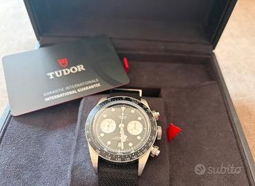 Salve, vendo un Tudor Black Bay Chronograph M79360N nuovo. L'orologio ha ancora la pellicola protettiva sul fondello. Movimento di manifattura, calibro MT5813 Cassa Cassa in acciaio inox lucido satinato, 41 mm Larghezza: 22 mm Altezza: 14,4 mm Lunghezza fissa in acciaio inox con inserto in alluminio anodizzato nero opaco, scala tachimetrica, indici argentati Quadrante Nero con contatori argentati, bombato Datario a ore 6 Movimento Movimento di manifattura, calibro MT5813 (COSC) con funzione cronografo Movimento cronografo meccanico a carica automatica con rotore di carica bidirezionale L'orologio è stato prodotto il 7 luglio 2023 ed è in garanzia.