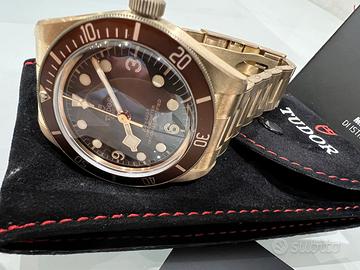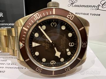 splendido Tudor Black Bay 58 Bronze, orologio iconico per veri intenditori. Diametro 39 mm, cassa in bronzo con splendida patina naturale, movimento automatico Manifattura Calibro MT5400 con certificazione COSC, fino a 70 ore di autonomia.
