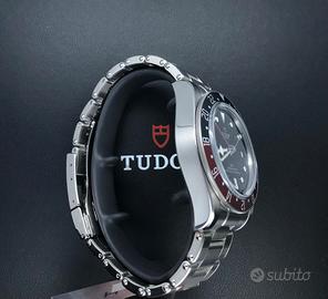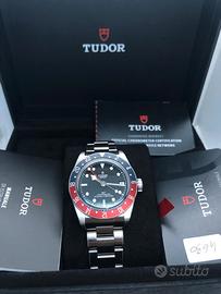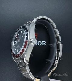 Tudor Black Bay GMT rosso e blu 41 mm vetro zaffiro bombato ghiera girevole rosso e blu quadrante nero con data ore 3 .