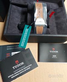 Orologio Tudor Black Bay P01 M70150-0001 70150 Black Dial 42mm 08/2024 acciaio con pellicole full sett no segni di utilizzo come nuovo. Descrizione Prodotto IlTudor Black Bay Ref. 70150combina l'eleganza senza tempo con lo spirito sportivo del brand. Con una robusta cassa in acciaio da 42 mm e un raffinato cinturino in pelle marrone, questo orologio offre uno stile classico ma deciso. È dotato di un movimento automatico MT5612 con data, vetro zaffiro antigraffio e una lunetta in acciaio che ne esalta la resistenza. Perfetto per chi cerca un accessorio sofisticato da indossare ogni giorno. Viene fornito con scatola e documenti originali, in condizioni impeccabili e mai indossato. Un'opportunità ideale per collezionisti e amanti dell'orologeria di qualità. Scheda Tecnica Tudor Black Bay Ref. 70150 Marca Tudor Modello Black Bay Numero di referenza 70150 Carica Automatico Materiale cassa Acciaio Materiale cinturino Pelle Anno di produzione 2024 Condizione Come nuovo e mai indossatoCorredoCon scatola originale e documenti originali GenereOrologio da uomo/Unisex Luogo italia, L'AquilaCalibroMT5612 Diametro 42 mm Impermeabilità 5 ATMMateriale lunetta Acciaio Vetro Vetro zaffiro