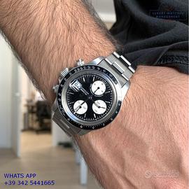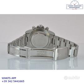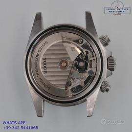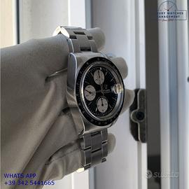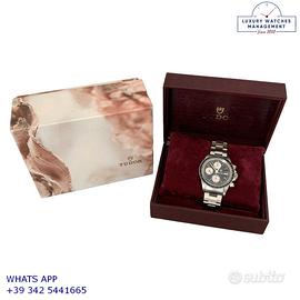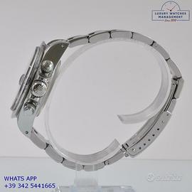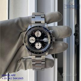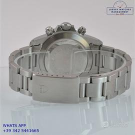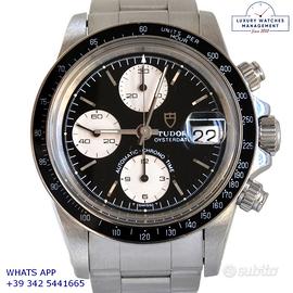 Tudor Daytona Oysterdate cronografo Big Block acciaio, anno di produzione 1992, ghiera acciaio a scala graduata 500, vetro plastica con lente ciclope, quadrante colore nero con data a tre contatori verticali colore bianco indici e sfere al trizio, movimento meccanico a carica automatica, bracciale Oyster acciaio a maglie piene con chiusura deployante originaleTudor.