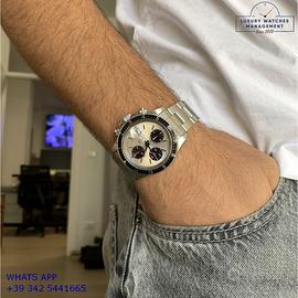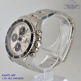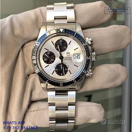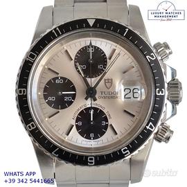 Tudor Daytona Oysterdate Big Block cronografo acciaio, anno di produzione 1993, ghiera acciaio unidirezionale con inserto alluminio colore nero a scala graduata, vetro plastica con lente ciclope, quadrante colore argento con data a tre contatori verticali colore nero indici e sfere al trizio, movimento meccanico a carica automatica, bracciale Oyster acciaio con chiusura deployante originale Tudor.