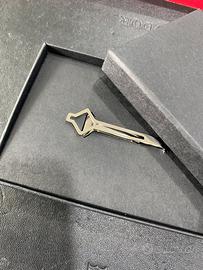 Fermacravatta Tudor a forcina, in acciaio liscio è il giusto accessorio che permette di completare e rendere elegante un perfetto outfit.