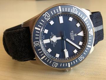 Il modello Pelagos FXD, dove la contrazione dell’inglese “fixed” allude alle robuste barrette fisse per l’attacco del cinturino, è stato sviluppato con la cooperazione dell’unità dei nuotatori da combattimento della Marina militare francese. Impermeabile fino a 200 m, è progettato per la navigazione sottomarina ed è ottimizzato per l’utilizzo professionale. La gamma comprende inoltre un modello che rende omaggio a decenni di orologi TUDOR al polso dei subacquei della US Navy. Completo di barrette di attacco del cinturino fisse, cassa in titanio, Calibro di Manifattura ad alte prestazioni e una lunetta girevole unidirezionale con misura del tempo trascorso, si presenta come la versione più moderna che ci sia del “Milsub” (abbreviazione di Military Submariner) del passato. Esteticamente, è in linea con il TUDOR Oyster Prince Submariner di fine anni ’60; incorpora elementi delle specifiche militari statunitensi per gli orologi subacquei. In sintesi, la gamma FXD è il frutto della collaborazione di TUDOR con due organizzazioni militari.