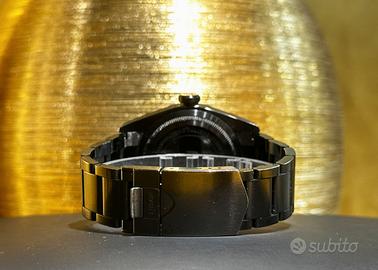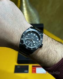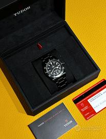 L'orologio è originale in tutte le sue parti. Tudor Heritage Black Bay Dark ref. 79230DK del 2018 full set Carattere deciso, tecnologia moderna e forte identità estetica definiscono questo Tudor Heritage Black Bay Dark ref. 79230DK, anno 2018, disponibile con scatola e garanzia originale. Un modello che rappresenta una delle interpretazioni più audaci della celebre linea Black Bay, pensato per chi desidera un diver iconico in una veste contemporanea e distintiva. La cassa in acciaio da 41 mm con trattamento PVD nero opaco conferisce all'orologio un look total black elegante e sportivo allo stesso tempo, capace di distinguersi al primo sguardo. La lunetta girevole unidirezionale, anch'essa nera, incornicia un quadrante perfettamente bilanciato, arricchito da indici applicati luminescenti e dalle iconiche lancette "snowflake", simbolo della tradizione Tudor sin dagli anni '70. Il cuore dell'orologio è il calibro di manifattura Tudor MT5602, certificato cronometro COSC, con una riserva di carica di circa 70 ore: una garanzia di precisione, affidabilità e autonomia ideale anche per un utilizzo prolungato. Il movimento è protetto da una struttura robusta e progettata per resistere a condizioni impegnative, in perfetto spirito diver. Completa il segnatempo il bracciale in acciaio con rivestimento nero, che assicura comfort al polso e coerenza estetica, rendendolo perfetto sia per un utilizzo quotidiano che per contesti più eleganti e contemporanei. L'impermeabilità fino a 200 metri ne sottolinea la vocazione sportiva e professionale. Questo esemplare, corredato di dotazione completa (scatola e garanzia), rappresenta una scelta ideale sia per chi desidera entrare nel mondo Tudor con un modello iconico, sia per il collezionista alla ricerca di una variante dal forte impatto estetico e sempre più apprezzata sul mercato.