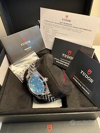 Vendo tudor ref 79000, 37 mm dicembre 2025 completo di tutto il suo corredo e bellissimo con questo quadrante color celeste sabbiato, lunetta cromata e bracciale jubilee. Completo anche di scontrino d’acquisto. Orologio di difficile reperibilità. I concessionari non lo vendono se non abbinato ad un altro Tudor, io ve lo do sotto listino.