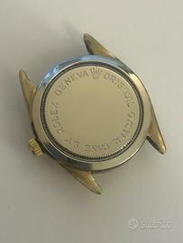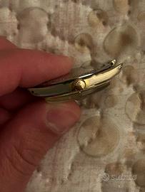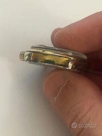 Vendo questi due oggetti: - Tudor Oysterdate carica a mano con quadrante nero da 34 mm, 40 mm ansa ad ansa. L’orologio è funzionante, originale ed è stato revisionato a fine 2024. Tuttavia ha un paio di problemi estetici, l’ossidazione ha compromesso la parte anteriore della cassa, che era placcata, ed ha cancellato una parte del seriale (si legge solo un 79), ed è venuta via un po di vernice da alcune cifre del datario dal 20 in poi. - Bracciale Rolex rivetti da 19 mm, 6 maglie da un lato e 4 dall’altro, in aggiunta maglia aggiuntiva non mostrata in foto. Questo è abbastanza tirato nonostante l’età e perfettamente indossabile. Finali 557, dunque compatibile con Air King Precision ed altre casse classiche da 34 mm. Il bracciale è compatibile con la cassa anche se non il suo, in quanto usciva con cinturino pelle. Il prezzo tiene conto dei difetti estetici della cassa, articoli vendibili anche singolarmente, si accettano offerte.