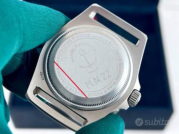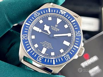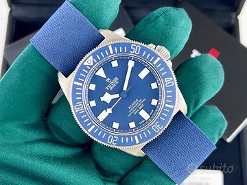 Tudor Pelagos FXD Marine Nationale francese, M.N. 22, referenza 25707B / 22, cassa 42mm titanio, ghiera in titanio con inserto blu, quadrante blu, cinturino nato in tessuto + secondo cinturino in gomma caucciù con fibbia in titanio, Maggio 2022, fondello inciso, calibro manifattura Tudor MT5602 con certificazione COSC.
