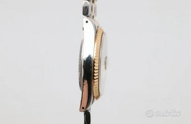 Completano il design la lunetta zigrinata in oro, la lente cyclope sulla data e il bracciale bicolore acciaio/oro, una combinazione raffinata e non così comune da trovare in questa configurazione.