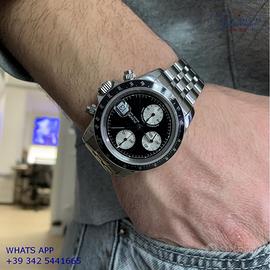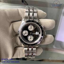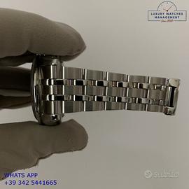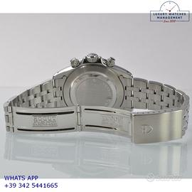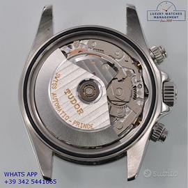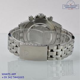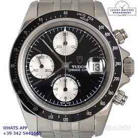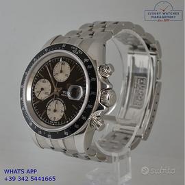 Tudor Daytona Prince Date cronografo acciaio, anno di produzione 2003, ghiera acciaio con inserto alluminio colore nero a scala graduata 500, vetro zaffiro antiriflesso, quadrante colore nero con data a tre contatori verticali colore argento indici e sfere al LumiNova, movimento meccanico a carica automatica, bracciale Jubilee acciaio con chiusura deployante originale Tudor.