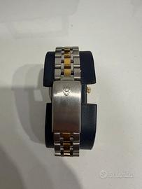 Vendo Tudor Oysterdate 72033, un classico intramontabile della maison Tudor, ideale per chi cerca un orologio elegante, raffinato e dalla forte identità estetica. L’orologio presenta un quadrante bianco pulito e luminoso, impreziosito da numeri romani in oro che conferiscono un aspetto sofisticato e senza tempo. La lunetta in oro giallo e il bracciale Rolesor acciaio/oro completano un design elegante e versatile, adatto a ogni occasione. ✔️ Caratteristiche principali: •Modello: Tudor Oysterdate 72033 •Movimento: automatico •Quadrante: bianco con numeri romani in oro •Materiale cassa: acciaio •Lunetta: oro giallo •Bracciale: acciaio e oro (Rolesor) •Vetro: zaffiro •Datario con lente ciclopica •Diametro cassa: 34 mm (classico ed elegante) Orologio perfettamente funzionante e in ottime condizioni estetiche, ideale per collezionisti o per chi desidera un pezzo dal fascino classico con la qualità garantita dal mondo Rolex/Tudor.