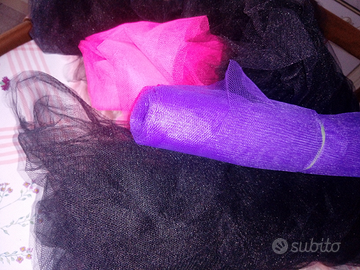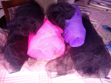 Materiale per vestiti di carnevale tulle di circa 3 metri a colore e pezze di pelliccia sintetica vendo a 5 euro al pezzo o tutto a 50 euro pezzi totali 11 posso spedire con spese a carico del compratore