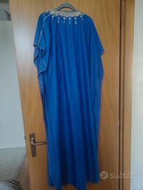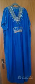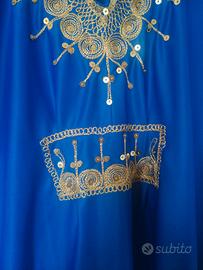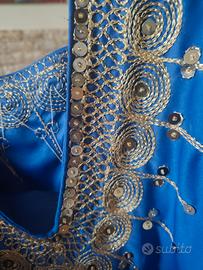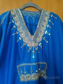 tunica lunga tunisina blu elettrico ricami dorati