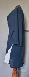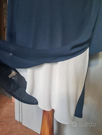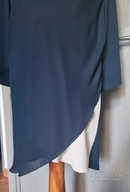 Blusa o tunica bellissima color blu e pannello bianco ideale per serate formali o per tutti i giorni anche come copricostume per le taglie m il manichino è taglia m ed è perfetto come utilizzo mini abito. L'etichetta riporta XL vestibilità più piccola massimo una L, 100% poliestere super leggera si asciuga in un attimo molto molto bello il collo morbido che riporta il colore del pannello bianco veramente elegante vedere tutte le foto!