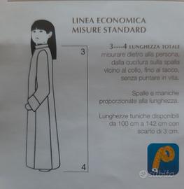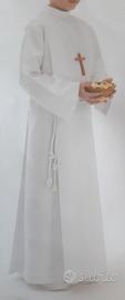 Vendo Tunichetta per la Prima Comunione, colore bianco 100% poliestere con pieghe davanti e dietro, adatta per maschietto e femminuccia. Taglie disponibili: 112 cm ( 3 pezzi ) 115 cm ( 2 pezzi ) 133 cm ( 1pezzo ) Per determinare la lunghezza, misurare dalla prima vertebra cervicale sino al tacco della scarpa che indosserà il giorno della Comunione ( vedi foto n.4 )
