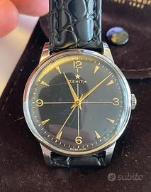 Vendo o permuto scambio raro Orologio Zenith "Stellina" anno 1952 ufficialmente asseqnato a TCDD (Ferrovie dello stato Turchia/ Turkish State Railwais),con logo impresso nella cassa in acciaio numerata marcata Zenith Movimento Zenith cal. 126 di manifattura a carica manuale numerato e appena revisionato Vetro nuovo Fibbia cinturino Zenith in acciaio Quadrante nero a settori indici applicati e lancette in oro Ottime condizioni , completamente originale ed in ottime condizioni Vendo o permuto scambio con altro orologio di pari pregio e valore
