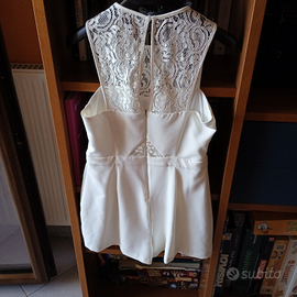 Tuta a pantaloncino misura L marca Bershka colore bianco con ricami in ottime condizioni