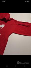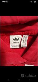 Tuta adidas usata ma in ottime condizioni. Il colore della felpa è un rosa intenso, con le maniche larghe. I pantaloni sono di tessuto tecnico con elastico e cerniera alla caviglia.