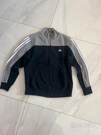 Tuta Adidas composto da felpa e pantalone coordinati. combinazione di colori nero e grigio, perfetto sia per lo sport che per il tempo libero. • Felpa: Modello senza cappuccio dotata di comode tasche laterali anteriori. • Pantalone: con elastico e lacci in vita per regolare la vestibilità; presente di tasche anteriori. Condizioni dell'articolo: • Stato: Usata pochissime volte, pari al nuovo. • Integrità: Capo perfetto. Nessun segno di usura, graffi, buchi e difetti nel tessuto. • Taglia: L. • Colore: Nero / Grigio.