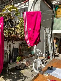 Tuta Adidas color fucsia, misura 38, in buone condizioni. Gambe raccorciate con piegatura facilmente rimovibile, cosi adesso le gambe misurano 97cm. Fatto nelle Filippine, 100% poliestere… Vendo a 40 euro per un ritiro locale a Trieste.