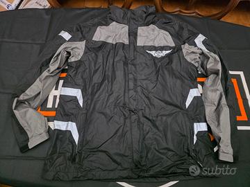 vendo tuta antipioggia harley davidson unisex tg M - 2XL impermeabile. Mai usata, priva di difetti. Colori nero/grigio . Elastici di aggancio al tallone, in vita sia per la giacca che per il pantalone. Il cappuccio ha un tasca interna dietro al collo.