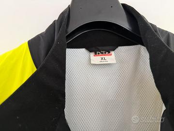 Tuta antipioggia IXS tg. XL Colore nero e giallo fluorescente. Motorcicle Fashion. Interno con fodera in rete leggera nella parte superiore per una facile calzata e traspirante. Cerniera lunga sul davanti per un facile accesso oltre al velcro. Collare con velcro per la regolazione individuale. Elastico in vita per una vestibilita’ perfetta. Pratica borsa per riporre la tuta. Chiusura x polsini e caviglie con chiusura a strappo. Completamente impermeabile. Nuova.