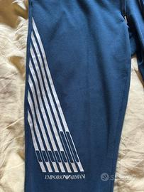 Tuta Armani blu scritte argentate pantaloni tg l giacca xl a me veste comoda che ho tg 46 pantaloni e 50 fellpa Felpa e pantaloni con tasche