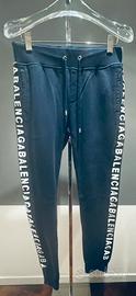 Tuta Balenciaga donna in cotone blu con strisce laterali nere + logo bianco. Felpa con cappuccio e pantalone con elastico in vita.