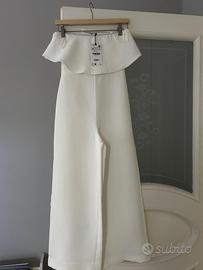 Vendo tuta bianca nuova di zara, taglia 40 a fascia con balza sul seno; il pantalone veste a pslazzo e si ferma alla caviglia. Nuovo ancora con cartellino prezzo 30€.