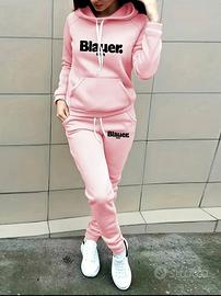 Completo alla moda top imbottito e pantaloni elastici con vita regolabile rosa Blauer con cappuccio