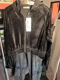 Tuta ciniglia nera donna tg unica ,giacca corta e pantaloni con tasconi ed elastici caviglie