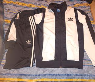 PANTALONI ADIDAS TIPICO CON LE RIGHE BIANCHE AI LATI, CON TASCHE E CORDINA PER STRINGERLI E FARCI IL NODO. CON GIACCHETTA E TASCHE AI LATI. In più ho tantissimo altro abbigliamento marca Adidas. Da amatore della marca. Pantaloni, magliette T-shirt , Felpe , Ecc.