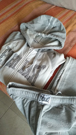 Tuta con felpa full zip e 2 tasche con cappuccio, bellissimi particolari a contrasto.