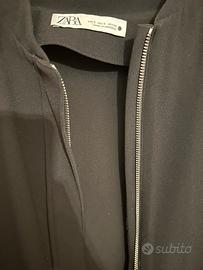 Tuta corta nera con tasche anteriori e tasca a filetto finta sul retro. Chiusura a zip, bottoni sui polsini. Taglia S