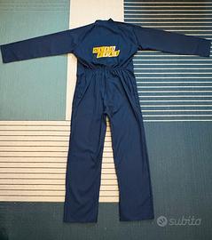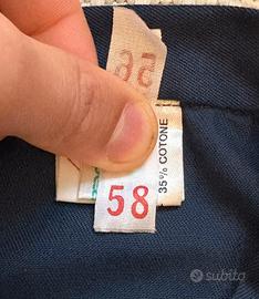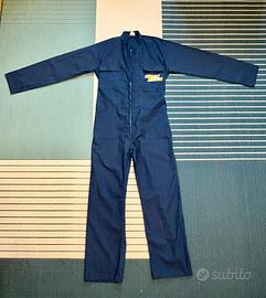 Bellissima e rara tuta intera da lavoro vintage "Olio Fiat", un vero pezzo di storia dell'automobilismo italiano. Perfetta per collezionisti, meccanici di auto d'epoca o per chi cerca un look workwear autentico. Dettagli principali: • Brand: Loghi originali "Olio Fiat" stampati sul petto e sulla schiena (caratteristico font a blocchi gialli). • Produzione: Realizzata in Italia dal Cotonificio Alfredo Grassi S.p.A. con tessuto di alta qualità Klopman. • Materiale: 65% Poliestere, 35% Cotone (robusto e resistente). • Chiusura: Zip frontale integrale (YKK originale) perfettamente funzionante. • Dettagli extra: Elastico in vita per una migliore vestibilità, tasche sul petto e tasconi laterali. • Taglia: Presenta doppie etichette 56 e 58 (veste indicativamente una XL/XXL comoda, ottima per chi è alto). Condizioni: Capo vintage in ottime condizioni generali. Il tessuto è ancora molto solido, il colore blu è vivido e le stampe sono ben conservate (piccolissimi segni del tempo che ne attestano l'autenticità).