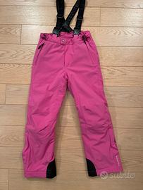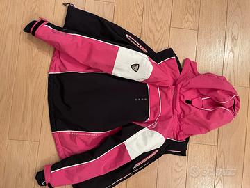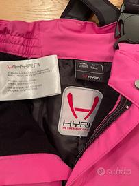 Indossata poche volte, in ottime condizioni, giacca e pantaloni da sci della Hydra Sport, taglia 12 anni da bambina, altezza 152 cm. Il bagno del colore fucsia del pantalone e’ leggermente diverso dagli inserti fucsia della giacca, anche nera e bianca. Pantalone e giacca acquistati insieme e sempre usati insieme