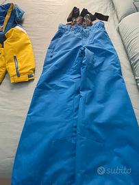 Vendo tuta da sci due pezzi bambino/bambina 8-10 anni usata due volte, praticamente nuova. Colore azzurro e giallo. Giacca e pantaloni con bretelle regolabili elasticizzate. Morbida e calda impermeabile adatta per bambini.