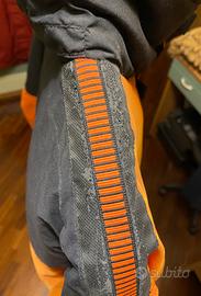 Tuta da Sci Brugi - Taglia 52 Materiale: 100% Poliestere Colore: Arancione e Nera Condizioni: Ottime unico difetto tessuto spalla leggermente rovinato (vedi ultima foto)