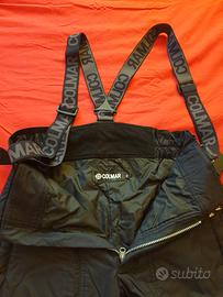 bellissima tuta da sci colmar originale, giacca taglia 46 e pantaloni taglia 48. tenuta molto bene. la tuta è una top di gamma, molto tecnica e tiene molto caldo.