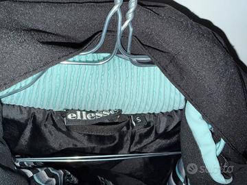Tuta da sci Ellesse da donna, completa ( giubbotto e pantalone ), nera con i profili azzurri chiari , taglia S ( tg. 40 ) per persone alte 155-165 cm, praticamente nuova, usata 6-7 volte perché la figlia cresce. Nessuna imperfezione e/o scucitura. Con effetto “DRY BOOST PLUS” Costo 69 euro