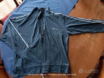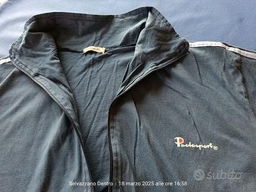 Tuta uomo marchio Paolasport. 100% cotone, colore blu, taglia XXL. Felpa blu con righe celesti sulle maniche, due tasche aperte, chiusura a zip. Pantalone blu con elastico in vita. Prodotto in ottimo stato quasi nuovo Misure pantalone: Lunghezza gamba da vita 109 cm Lunghezza gamba da cavallo 78 cm circonferenza elastico vita 68 cm Misure felpa: Larghezza spalle 60 cm Larghezza torace 60 cm Lunghezza felpa 68 cm Lunghezza manica 59 cm