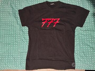 t-shirt nera con 777 rosso.