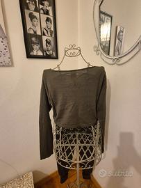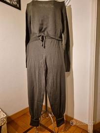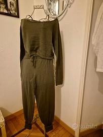 Tuta da donna Arabesque colore verde militare. Maglia modello corto a manica lunga. Pantaloni con coulisse e polsini sulle caviglie. Taglia S. Materiale lana e acrilico