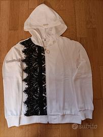 pantalone + felpa con cerniera Twinset, taglia xs, bianca con dettagli in pizzo nero, nuova mai usata