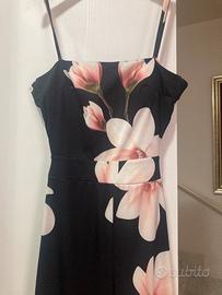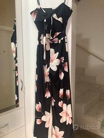 Tuta donna elegante base nera con fiori e laccetti dietro per fare nodo come in foto, taglia unica 42/44