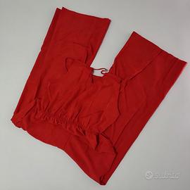 Abito in tuta-pantalone, colore rosso, senza maniche, con laccetti, gamba larga. Taglia M.