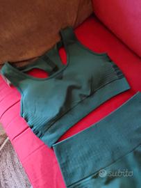 Vendo per errore di taglia, tuta donna coordinata verde scuro,bellissima con top push up e leggins traspirante push up. Nuova.